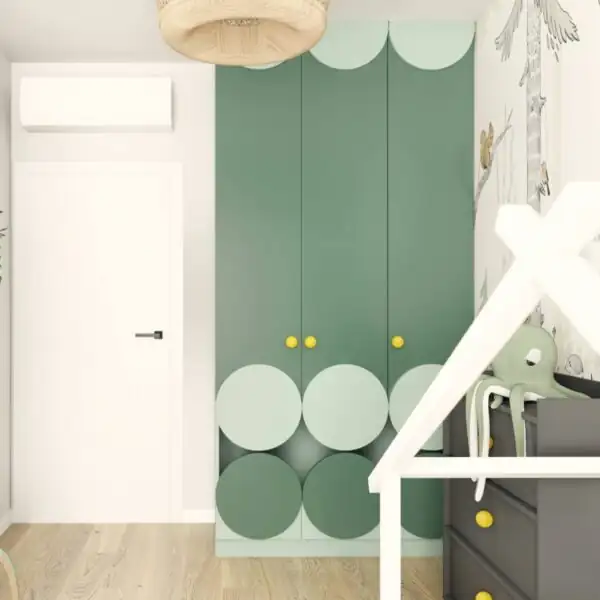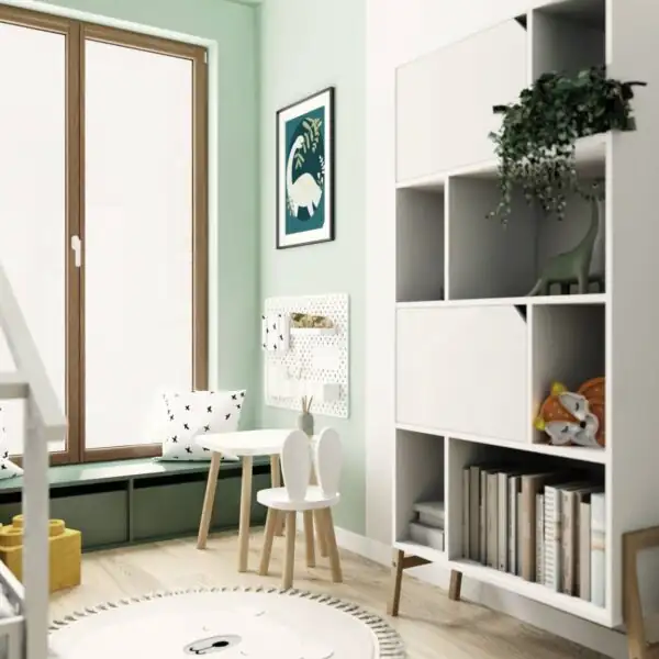 Nie zapominamy również o najmłodszych członkach rodziny. Nasze mieszkanie w Krakowie posiada wyjątkowo zaprojektowany pokój dziecięcy, który jest prawdziwą krainą marzeń dla maluchów. Wygoda, funkcjonalność i kreatywność to kluczowe elementy tego pomieszczenia. Sypialnia dziecięca zachwyca nie tylko praktycznymi rozwiązaniami, ale także piękną fototapetą, która przenosi naszych małych mieszkańców w magiczny świat ich ulubionych bajek i przygód.